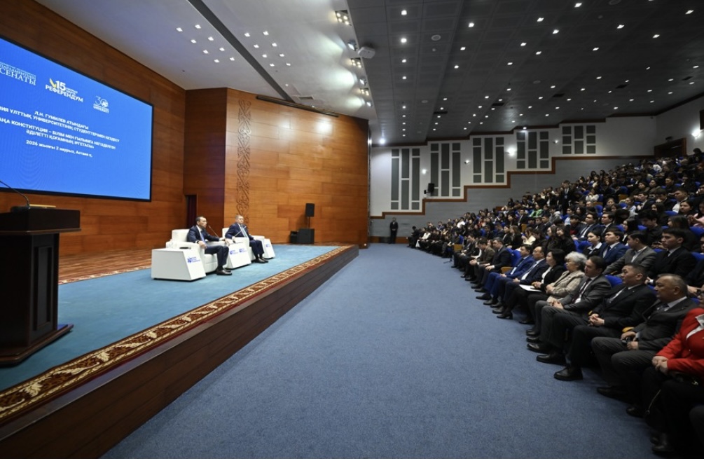 Сенат төрағасы Мәулен Әшімбаев Л.Н.Гумилев атындағы Еуразия ұлттық университетінің студенттерімен кездесті. Іс-шарада жаңа Конституция жобасының негізгі нормалары мен оларды іске асыруда жастардың рөлі талқыланды. Сондай-ақ әлеуметтік-саяси сын-қатерлер кеңінен сөз болды.